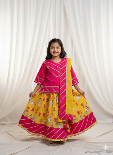 Klingaru Lehanga Choli - Yellow Pichwai with Pink Top and Dupatta (PREORDER)