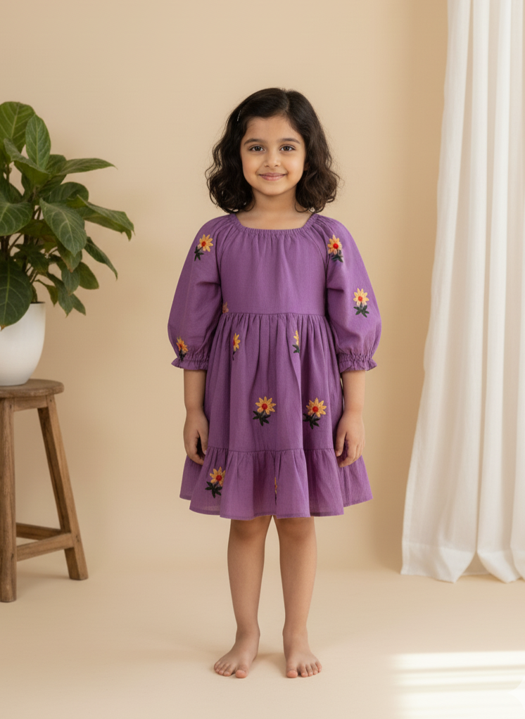 These embroidered Klingaru Frocks are breezy, comfortable and the yellow floral embroidery just adds to its charm. The three tire pattern and the elastic detailing at back - makes it perfect for all occasions.