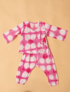 Unisex Newborn Full Sleeves Jhabla Set - Pink Shibori