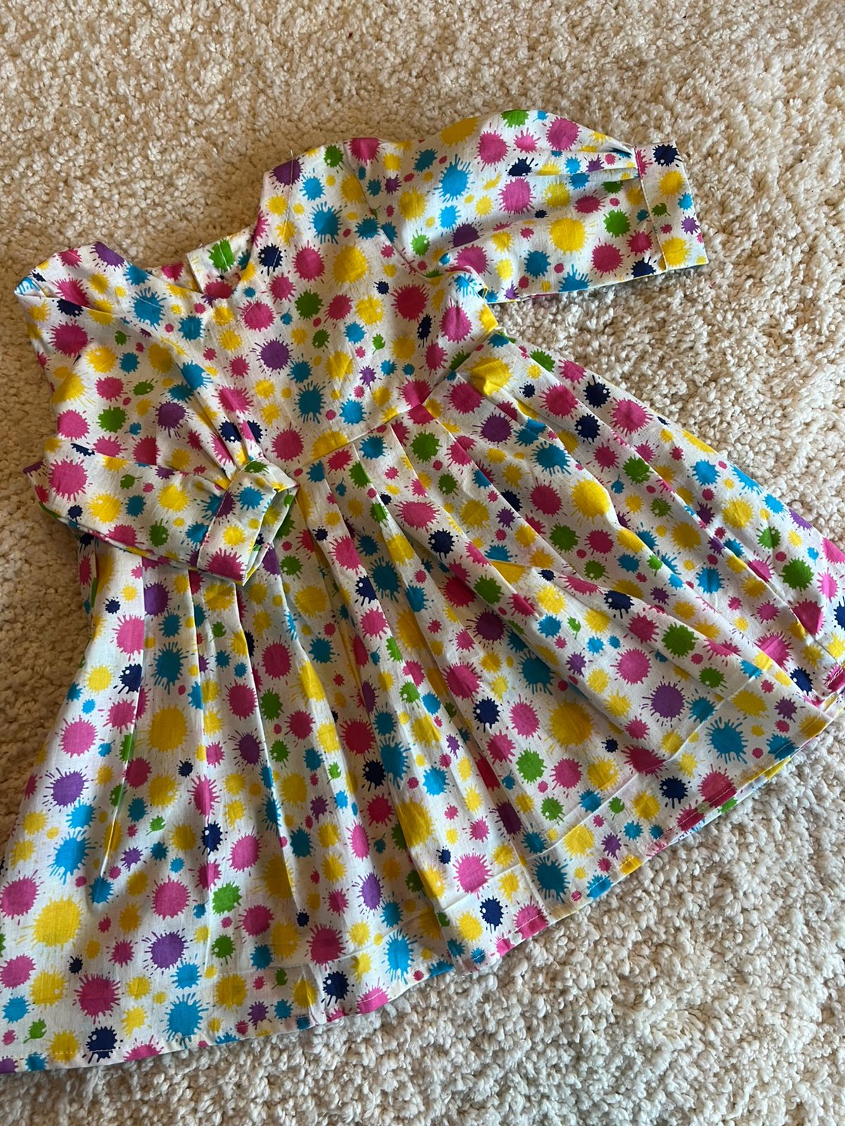 Celebrate the festival of colours in style with this vibrant cotton frock! Designed with a playful splash of hues, it's the perfect companion piece to match with the boys' shirt for Holi festivities. Crafted from soft, breathable cotton, this cheerful frock keeps your little one comfortable while spreading joy and colour. Ideal for creating coordinated family moments during India's most colourful celebration!