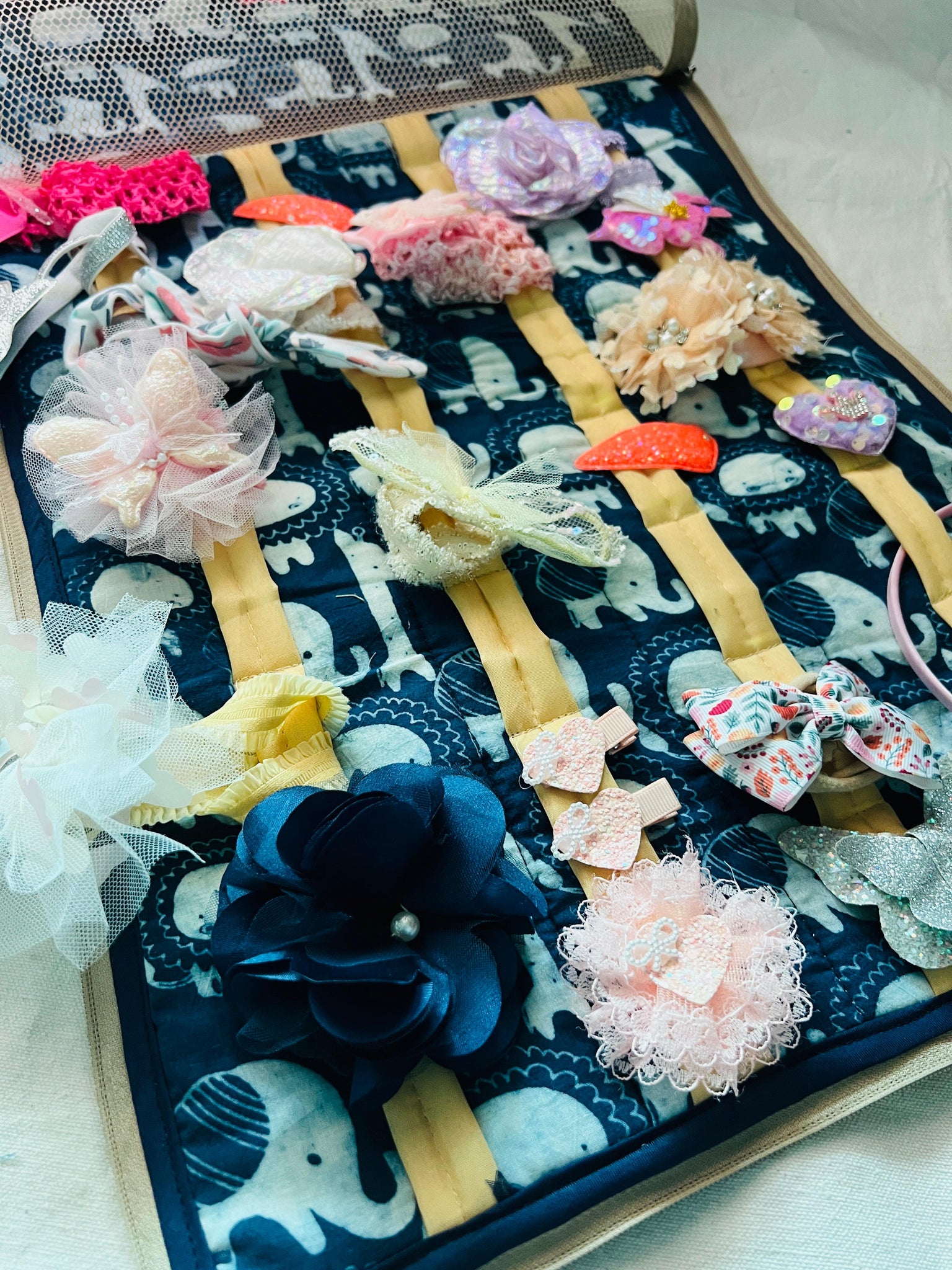 Hair Clip Organisers comes with different sections to organise kids hairbands and clips. Hang them up for easy viewing and never lose track of your clips again. Available in multiple quirky prints. (No more digging through messy drawers!)
