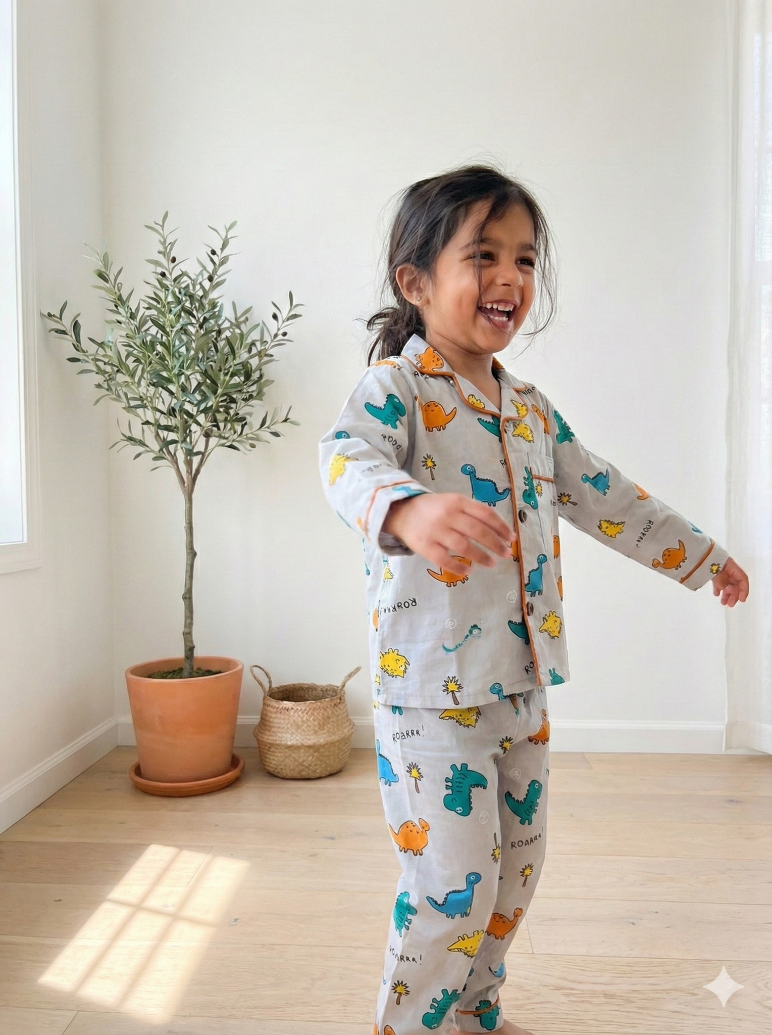 Klingaru Night Suit - Dino's in Grey and Blue Print