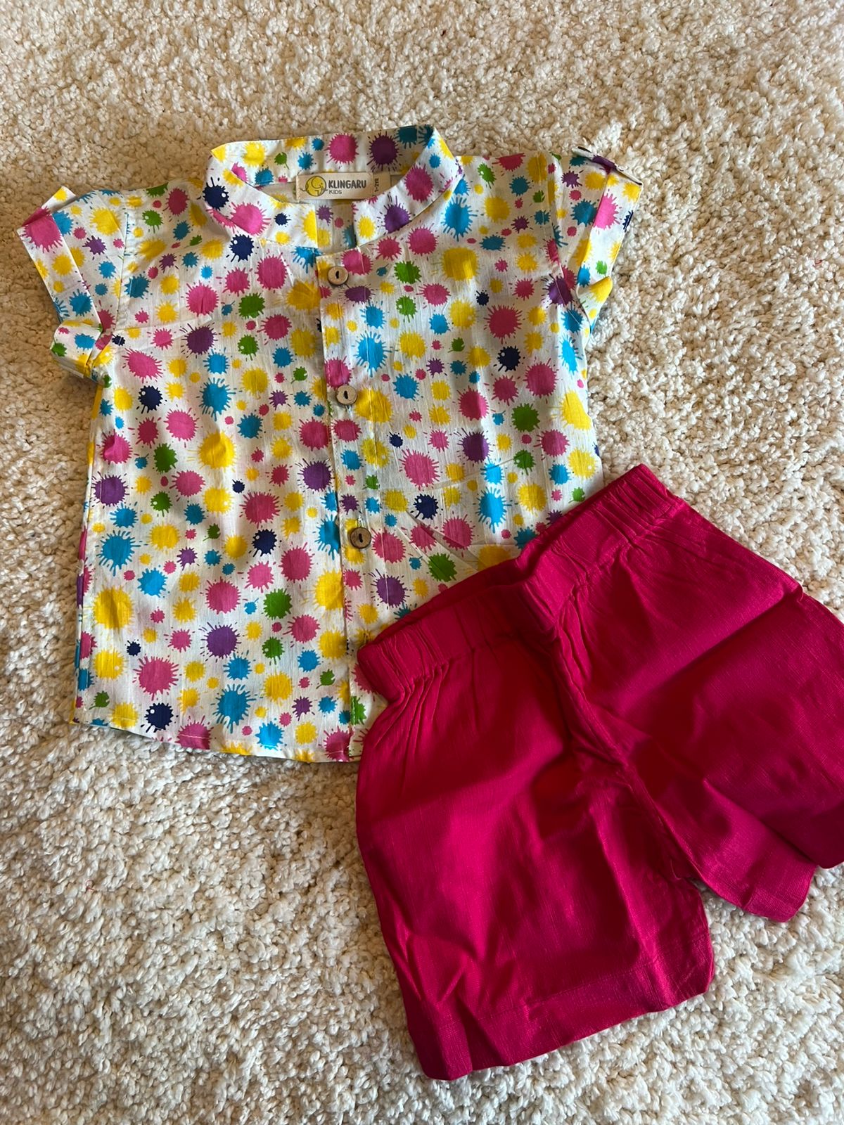 Celebrate the festival of colours in style with this vibrant cotton shirt! Perfect for Holi festivities, it features a cheerful splash of hues that capture the spirit of the season. Crafted from soft, breathable cotton for all-day comfort, this shirt lets you embrace the joy and energy of the celebration. Mix and match with our coordinating shorts to create your complete festival look. Whether you're playing with colours or attending Holi gatherings, this playful piece brings festive cheer to your wardrobe.