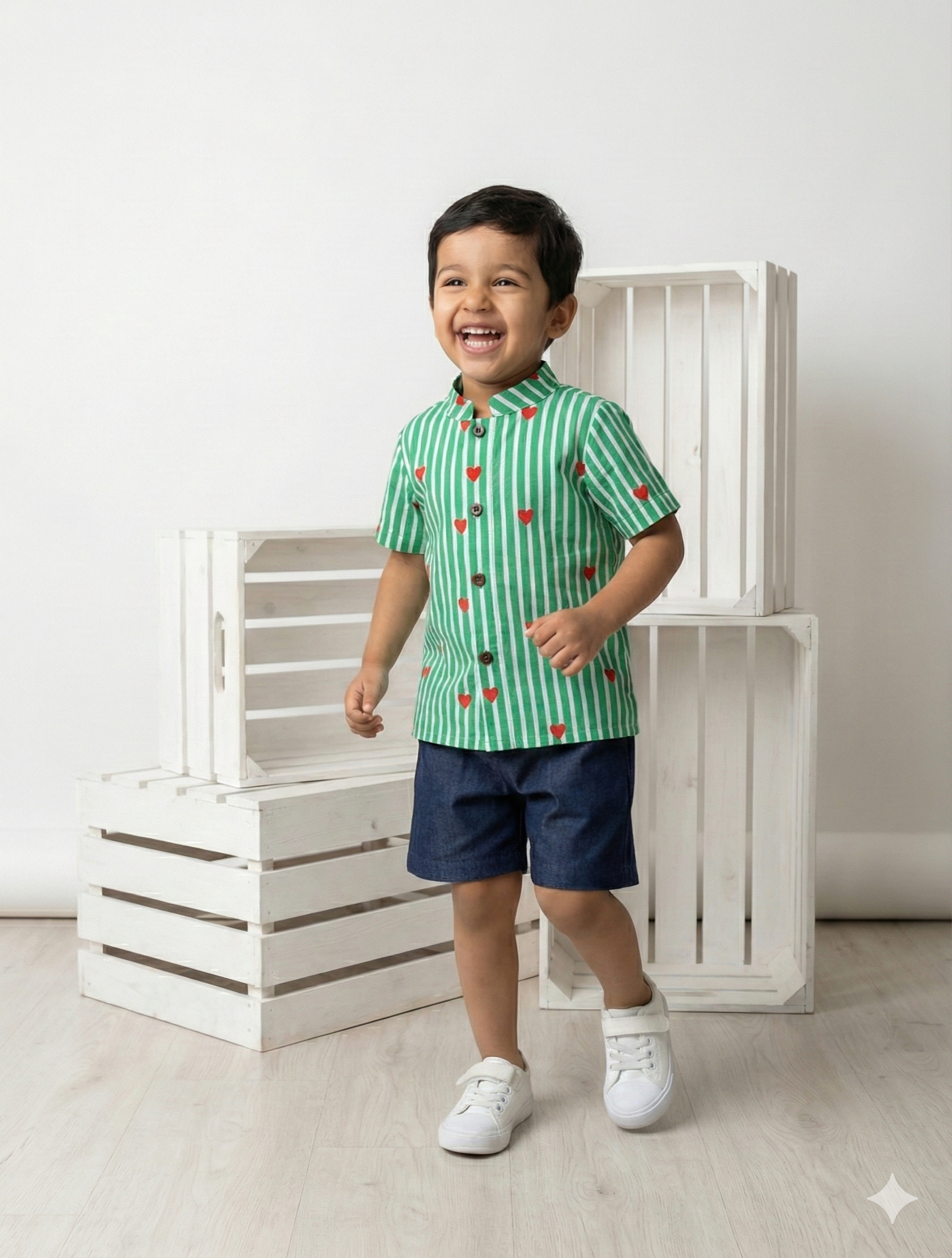Perfect for little ones who love to express themselves! This charming green shirt features adorable heart patterns that bring a fun, cheerful vibe to any casual outfit. Crafted from soft, breathable cotton, it's comfortable enough for all-day wear—whether he's playing at home, heading to school, or enjoying outdoor adventures. The relaxed fit makes it easy to move and play, while the vibrant green base with heart details adds personality to his everyday wardrobe. A versatile staple that pairs effortlessly with shorts