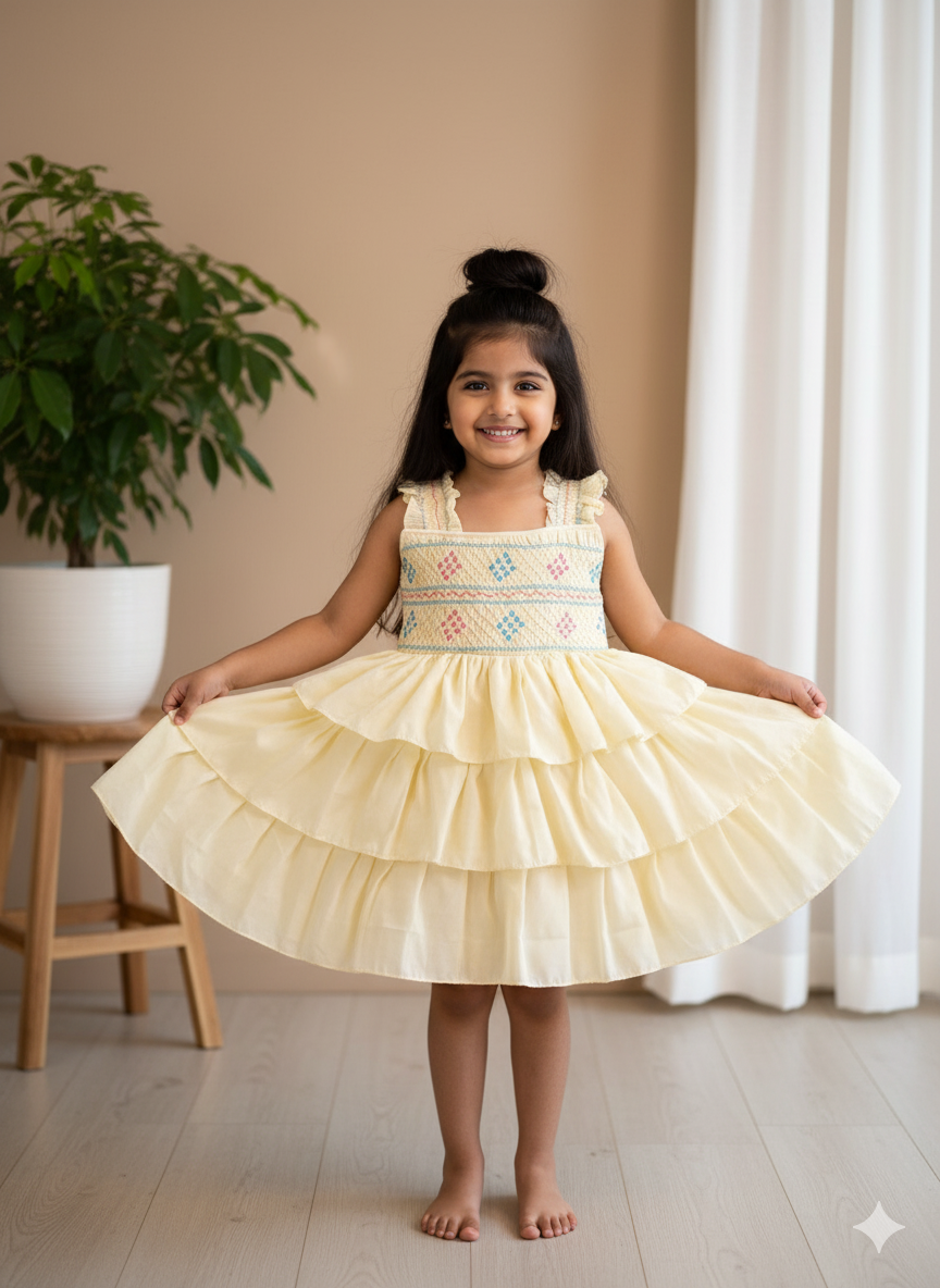 Introducing these gorgeous smocking frocks for little girls. Perfect for comfortable frill summer dress. The beautiful hand smocking work makes it unique.