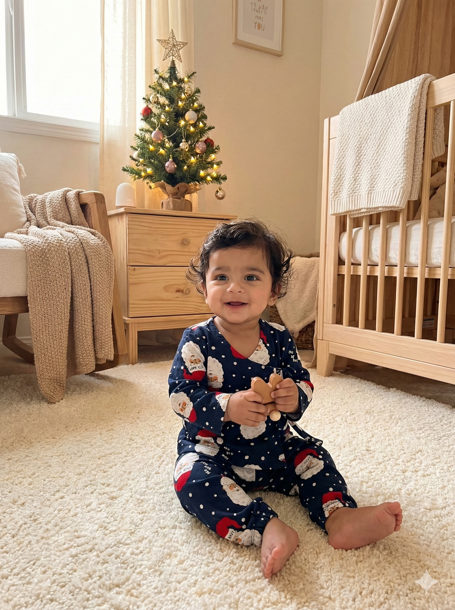 Wrap yourself in festive comfort with this unisex jhabla-style night suit, crafted from soft flannel cotton. Featuring a cheerful Christmas print which is perfect for holiday lounging or cozy winter nights. The relaxed jhabla cut ensures easy movement and all-day comfort, making it ideal for new borns. Celebrate the season in style while staying warm and snug!